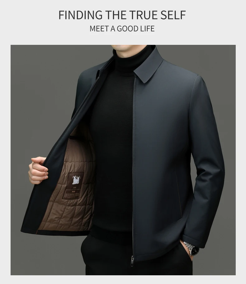 Sé el primero en valorar “Abrigo térmico grueso para hombre, chaqueta ejecutiva clásica de estilo chino con cuello vuelto, color azul marino, invierno, 2024”